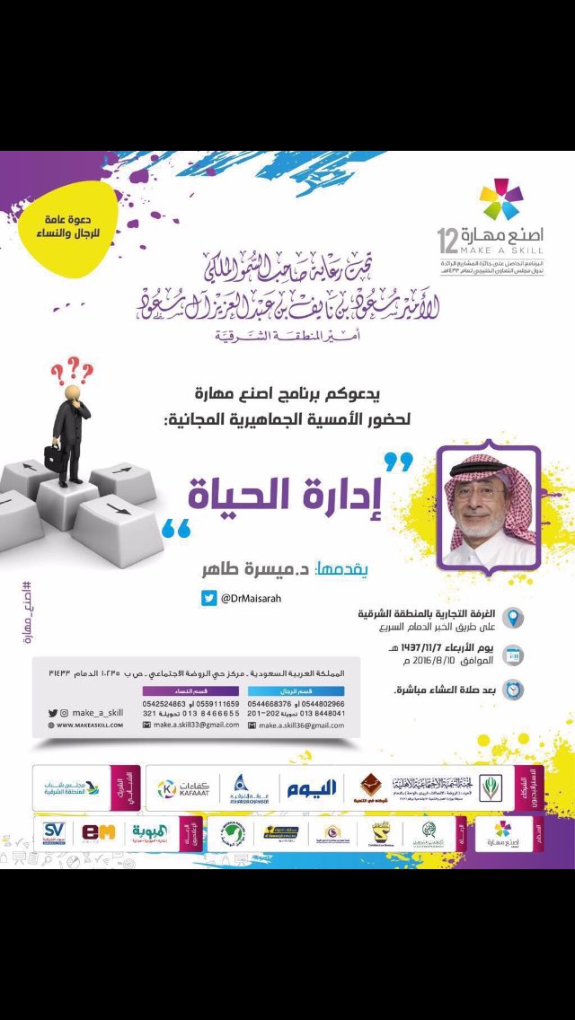 د ميسرة طاهر On Twitter بعد غد الأربعاء ألتقي بإذن الله بالأحبة في الدمام في أمسية بعنوان إدارة الحياة