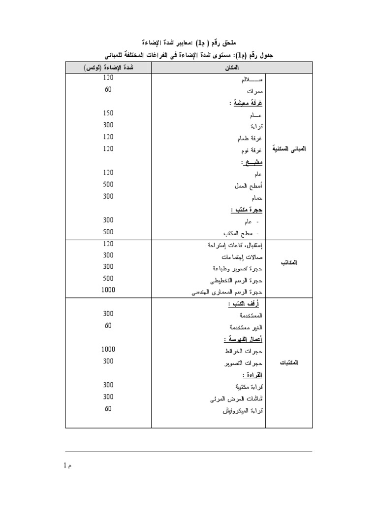 E Power جداول شدة الاضاءة الكود المصرى فيسبوك