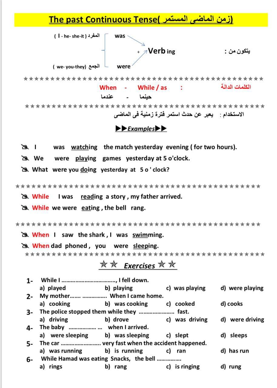 تمارين زمن الماضي العادي Simple Past و زمن الماضي المستمر Past Continuous الإنجليزية مع السيمو English With Simo