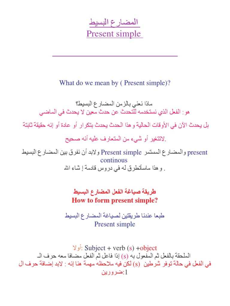 شرح المضارع البسيط The Present Simple تعلم لغتك