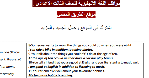 تحميل مذكرات شرح سؤال المواقف للصف الثالث الاعدادى المنهج الجديد مواقف جاهزة