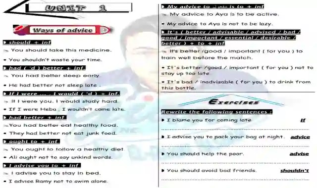 Should And Shouldn T الثالث الاعدادى اللغه الانجليزيه 2021 الوحدة الاولى اعطاء النصيحه Youtube