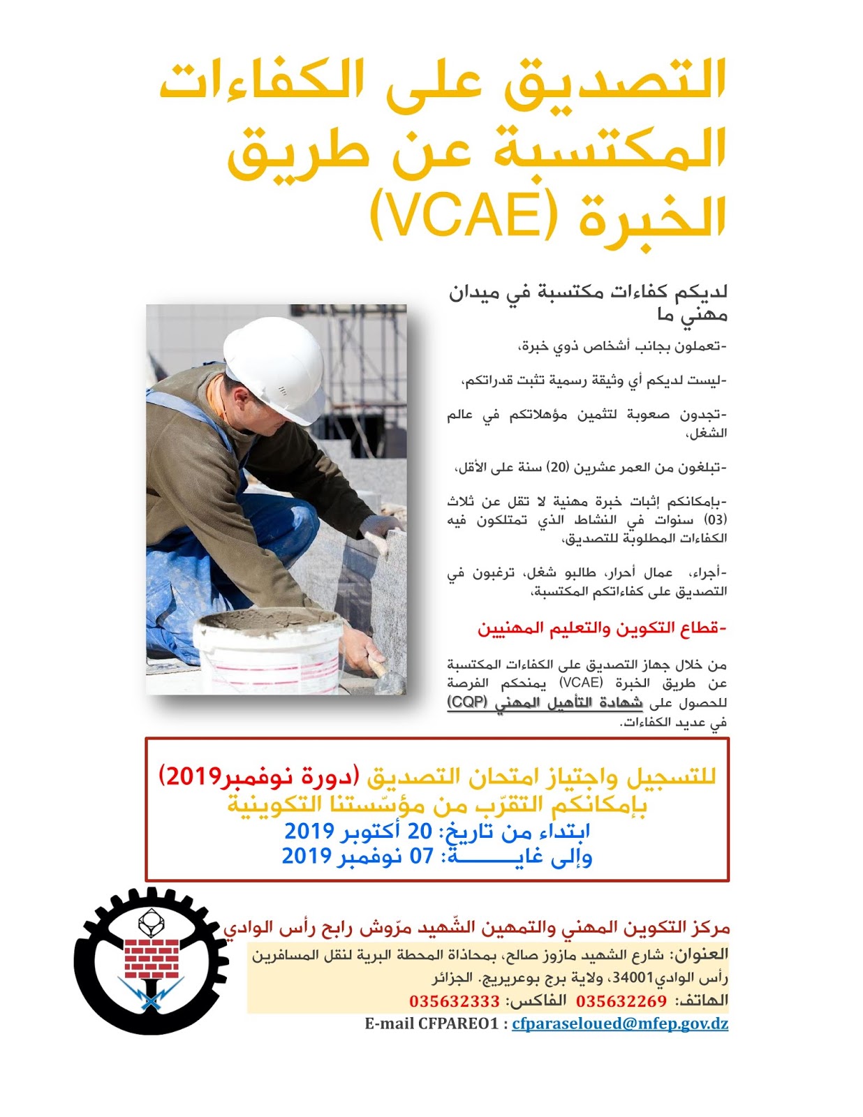 الت صديق على الكفاءات المكتسبة عن طريق الخبرة Vcae دورة نوفمبر 2019 Cfpareo1