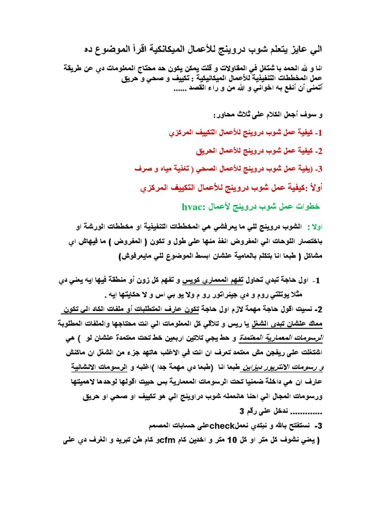 تصميم انظمة التكييف و الحريق و الصرف شوب دروينج بالاتوكاد خمسات