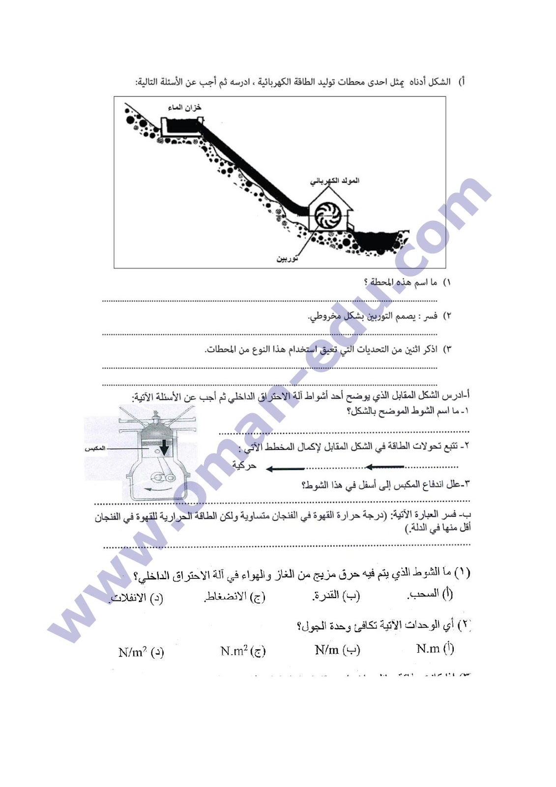 اسئلة وتدريبات على درس آالة الإحتراق الداخلي للصف العاشر ف 2