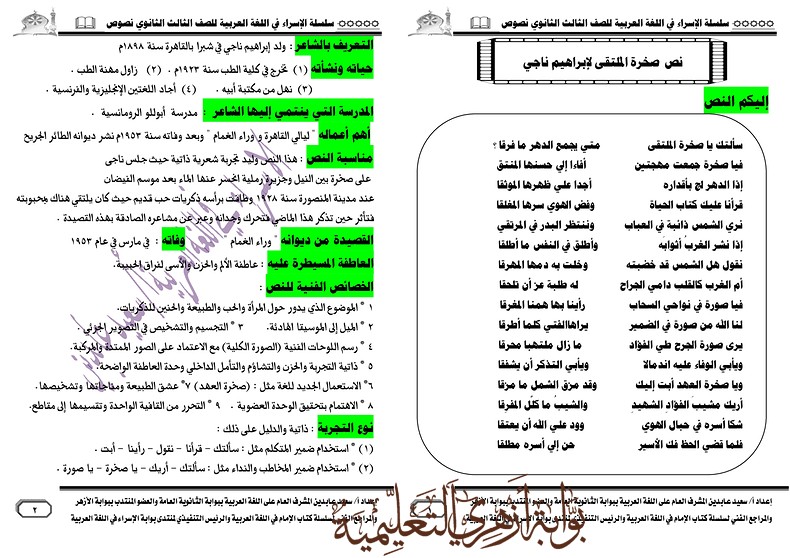 شرح نص صخرة الملتقى للثانوية العامة موقع جمال الحصري للغة العربية Facebook