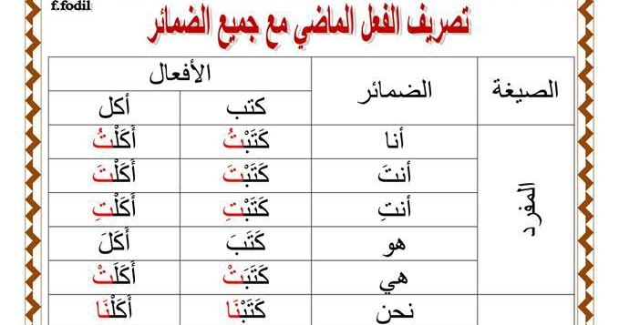 معلقات تزيين القسم درس تصريف الفعل الماضي و الفعل المضارع و فعل الامر مع جميع الضمائر